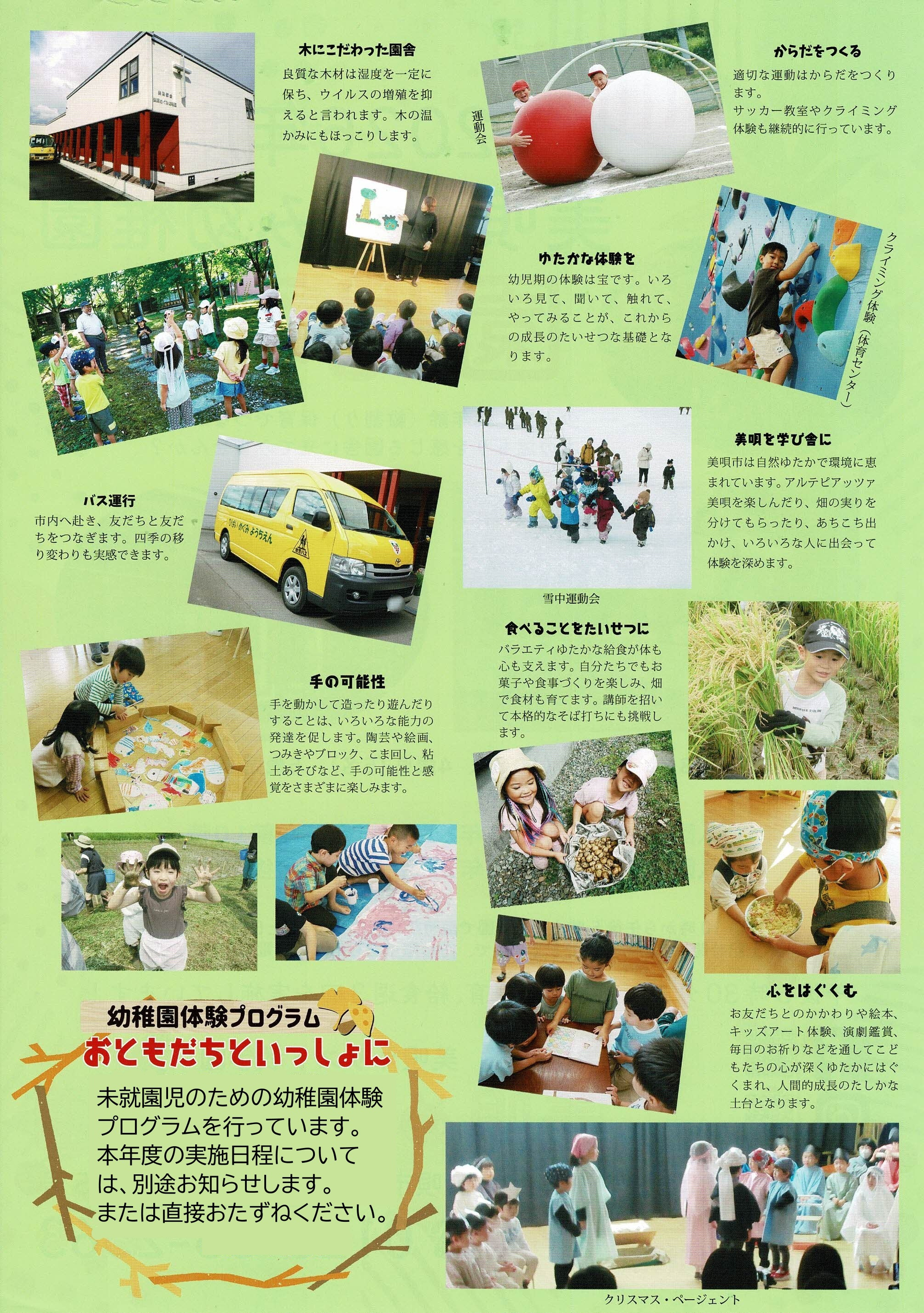 美唄めぐみ幼稚園は、小規模ながら、数々のユニークな特色をもつ幼稚園です。
